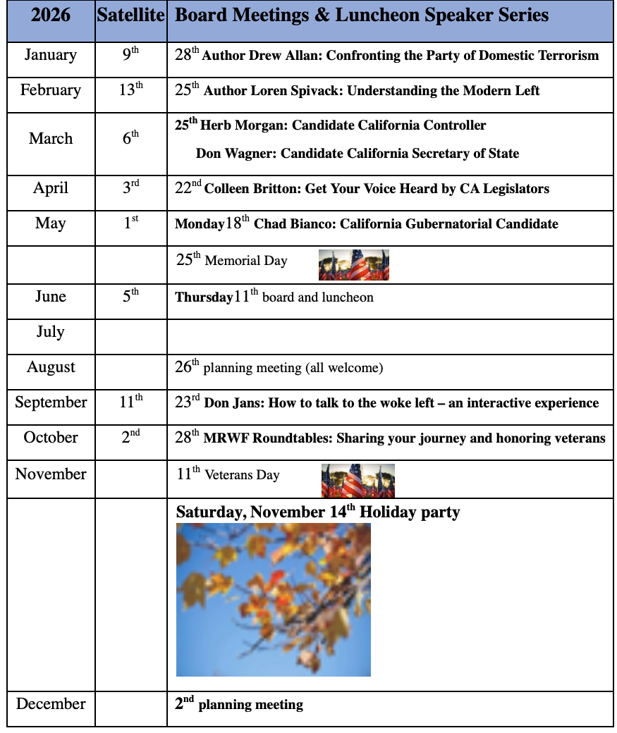 Our MRWF SPEAKER SERIES for the first five months of the 2026 year! We are delighted to provide great access to provocative conservative speakers!